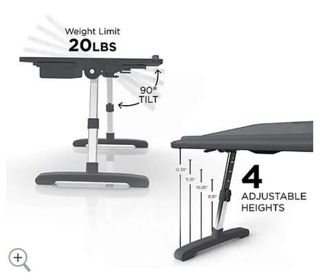Total Desk is an adjustable and portable organizing desk that is a great enhancer for the work-from-home environment. The product features a faux leather desktop and a total of four adjustable heights. One can experiment with a 90-degree tilt until reaching the optimal position and the piece also boasts a small storage drawer where individuals can place pens, pencils, clips, and other office must-haves. A removable book stand provides additional functionality as a second surface when needed.